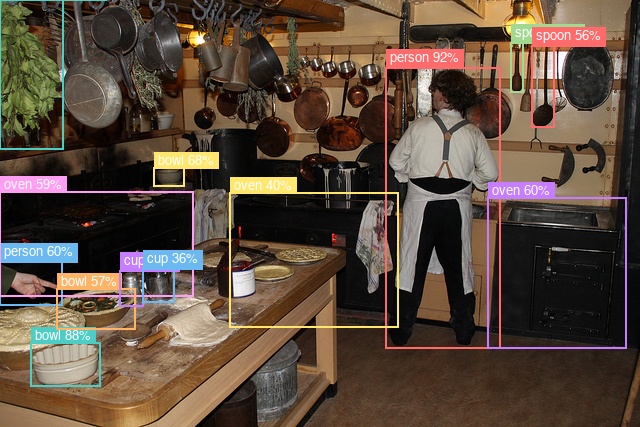 80 COCO classes with multi-scale FPN for accurate bounding box predictions